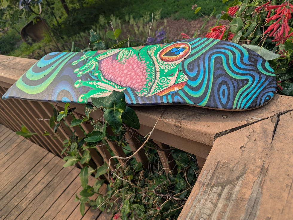 2025 Kinheart Gallery Skateboard deck show, I turned this board in the same day as my son's graduation party! Rushed as it was, I love this piece!